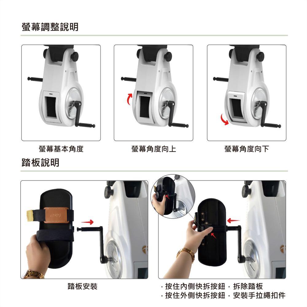 - 手部與腳部可同時運動,也可單一使用腳部訓練。